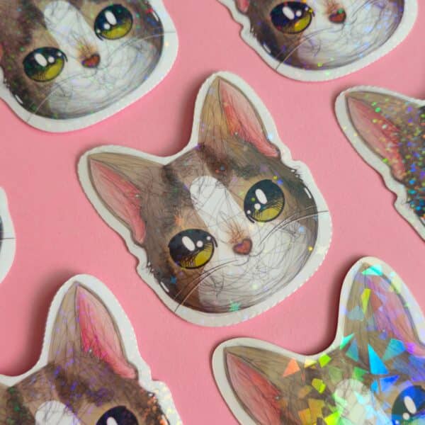 Adesivo Holográfico Gatinho Tigrado com Máscara e Olhos Verdes